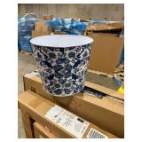 Nearly Natural 12in. Oriental Blue and White Classic Round Metal Planter