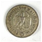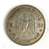 1936 WW2 German Paul von Hindenburg 5 Reichsmark 90% Silver Coin |