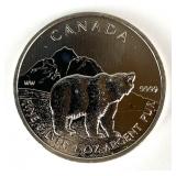 2011 Canada $5 Grizzly Bear 1 oz .999 Fine Silver Coin |