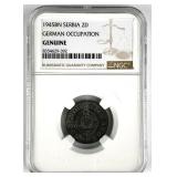 NGC Graded 1945 BN Serbia 2D German Occupation 2 Dinara Coin |
