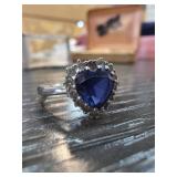 Sterling Silver Heart-Shaped Blue Stone Ring |