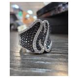 Sterling Silver Sz 7.5-8 Ring with Black Stones |