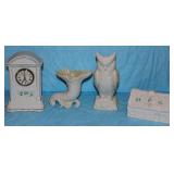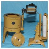 Porcelain & Pottery: German Monk nodder, German chocolate set, Stangl roosters, Royal Haeger mid century console set,pair of Hummel lamps, pair of large Lladro Eskimo Inuit figures, several smaller Lladro figures, Lenox First Blessings nativity, Belleek, large Italy covered tureen, stoneware crocks, Boehm flowers, Staffordshire dogs & figures, Fitz & Floyd antelope platter, Staffordshire figural pitcher, gorgeous German woman athlete figurines, German berry set, covered jars, coronation memorabilia, Roseville flower frog++. Art & Ephemera: Disney/NY 64 World's Fair poster, oil paintings, reverse paintings, prints, steel engravings, fantastic animation art, great 70's collage of tickets & playbills, 2005 Moorestown NJ Nipper poster, buttons & map, Afro-American Bicentennial celebration poster, early copy of Moby Dick, Aftermath of Slavery by William Sinclair, 1816 Bible, Halloween die cuts, framed vinegar Valentine, Hunt Brother's Circus tickets books, numerous metal art sculptures, creepy head sculpture, modern colorful prints, Victorian framed stereoviewer & slides, and more. Check back as we will be updating frequently. |