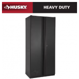 - Organize your workspace with this Husky heavy-duty garage cabinet. The tall freestanding cabinet offers adjustable shelves with a holding capacity of up to 350 lbs. give you plenty of space for your tools and equipment.