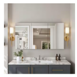 (198) 48 in. W x 26 in. H Rectangular Aluminum Frameless Surface Mount Bathroom 3-Doors Medicine Cabinet with Mirror