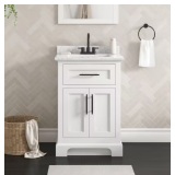 (263) Doveton 24 in. Single Sink Freestanding White Bath Vanity with White Engineered Marble Top (Assembled)