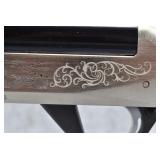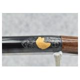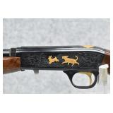 1R. Browning (Japan) – Mod. SA-22 Grade VI – 22LR Cal. Semi-Auto Rifle – w/19¼” Barrel w/Beaded Front and Adjustable Rear Flip-Up Sights – Blued Finish – w/Highly Figured Checkered Pistol Grip Wood Stocks w/Factory Metal Butt Plate – w/Tubular Magazine Fed from Butt Stock – Receiver Engraved on Both Sides w/Gold Inlay of Fox, Squirrel, Game Birds, and Bird Dog Scenes – Unfired w/Factory Box and Manual – New for 1987!