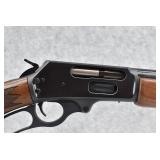 25R. Marlin – Mod. 1895 – 45-70 Gov’t Cal. Lever Action Rifle – w/22” Barrel w/Hooded Blade Front and Adjustable Flip-Up Rear Notch Sights – Blued Finish – w/Diamond Checkered Capped Pistol Grip Wood Stock and Forearm w/Factory Brown Rubber Butt Pad – w/Half Length Tubular Magazine – Unfired w/Factory Box, Manual, and Lock