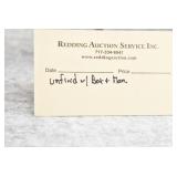 All items sold are subject to Federal and State Regulations. All modern guns must be registered. Gun registration is handled by Redding Auction Service for a nominal fee. Modern handgun purchasers must be Pennsylvania residents at least 21 years of age and must have photo ID (driver’s license) and be able to pass a PICS background check. Out of state residents must have a FFL or a licensed dealer in their state to receive USPS shipment of Pistols and/or Revolvers. Modern rifle and shotgun purchasers must be at least 18 years of age and must have photo ID (driver’s license) and be able to pass a PICS background check in order to be eligible to purchase firearms. We do not implement a Buyer’s Premium (“Buyer’s Penalty”) or other hidden fees/penalties. Please Note: Redding Auction Service Inc. is not, nor will be held responsible if the buyer fails a PICS background check and are ineligible to possess a firearm. If this situation arises, Redding Auction Service Inc. will not issue a refund but we will gladly consign the firearm(s) for the ineligible buyer in a future upcoming sale (Prevailing Commission Rate will be deducted from sale proceeds).