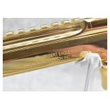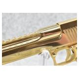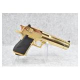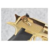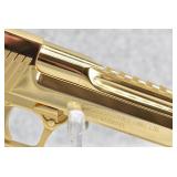 40R. Magnum Research – Mod. Desert Eagle – 44 Magnum Cal. Semi-Auto Pistol – w/6” Barrel w/Ramp Blade Front & Adj. Rear Notch Sights – Gold Finish – w/Factory Wrap-a-Round Black Rubber Grips – w/2 Factory Detachable Magazines – As New w/Hard Case, Manuals & Accessories