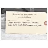Redding Auction Service Inc. reserves the right to hold any or all merchandise purchased by personal check until the check has cleared the bank. If shipping is requested/required by the purchaser, all packing and UPS/USPS shipping charges will be paid prior to shipping.