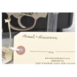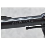 171R. Scarce! Smith & Wesson – Mod. 18 K-22 Combat Masterpiece Double Action Revolver – Modified to Shoot the Harvey .224 KAY-CHUK Cartridge – Serial Number K357163 – Gun is Fitted With a 4” Barrel w/Ramp Front Sight & Adj. Rear Sights – Gun Has a Blued Finish – Gun is Stocked w/Factory Diamond Checkered Walnut Grips w/S&W Medallions – w/Factory 2pc. Box, Manual & Wax Paper – The Harvey .224 KAY-CHUK Cartridge Was Developed by Jim Harvey in the Mid 1950’s – Limited Research Shows That Jim Harvey Made Around 30 of These Guns (Model 17’s, 18’s, 48’s, Etc) Before Selling the Rights to Bennett Gun Works in Delmar, New York Who in Turn Converted Approx. 300 Guns Between 1956-1959. Most Guns Were 6” Barrels, but 4” Guns Have Been Observed. This Gun Would Make a Great Addition to Any Smith & Wesson Collection!