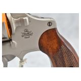 180R. Smith & Wesson – Mod. 57-1 “41 Magnum Target” – 41 Mag. Cal. Double Action Revolver – w/8 3/8” Barrel w/Red Ramp Blade Front and White Outlined Adjustable Rear Notch Sights – Nickel Finish – w/Checkered Target Wood Grips w/Smith & Wesson Medallion, Target Hammer, and Target Trigger (3 T’s)