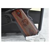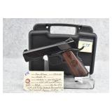 57R. Iver Johnson – Mod. Hawk 1911 – 45 Auto Cal. Semi-Auto Pistol – w/4 ¼” Barrel w/Dovetail Blade Front & Adj. Rear Notch Sights – Blued Finish – w/Factory Checkered Rosewood Grips – w/Factory Detachable Magazine – New w/Hard Case, Manual & Accessories