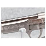 62R. Beretta – Mod. Billennium-92 – 9mm Para Cal. Semi-Auto Pistol – w /4.9” Barrel w/3-Dot Blade Front & Adj. Rear Notch Sights – Stainless Finish – w/Enhanced Frame & Slide – w/Carbon Fiber Grips – w/2 Factory Detachable Magazines – New w/Hard Case, Manuals, Accessories & Shipping Box – Limited Mfg. in Italy of 2,000 Between 2002-2003 Only