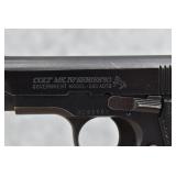 66R. Colt – Mod. MK VI -Series 80 Gov. Model – 380 Auto Cal. Semi-Auto Pistol – w/3 ¼” Barrel w/Blade Front & Adj. Rear Notch Sights – Blued Finish – w/Checkered Black Plastic Grips – w/Colt Detachable Magazine – w/UPS Shipping Box & Paperwork