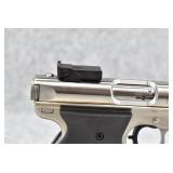 177R. Ruger – Mark I Target – 22LR Cal. Semi-Auto Pistol – w/5½” Heavy Target Barrel w/Blade Front and Adjustable Rear Notch Sights – Blued Finish – w/Factory Ruger Silver Eagle Checkered Black Plastic Grips – w/1 Factory Detachable Magazine