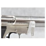 174R. AMT – Mod. Automag II – 22 WMR Cal. Semi-Auto Pistol – w/4 9/16” Barrel w/Blade Front and Adjustable Rear Notch Sights – Stainless Finish – w/AMT Factory Black Plastic Grips – w/1 Factory Detachable Magazine