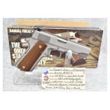 70R. Randall Arms – Service Model C – 45 Auto Cal. Semi-Auto Pistol – w/4 ¼” Barrel w/Factory Sights – Stainless Finish – w/Checkered Wood Grips – w/Factory Detachable Magazine – As New w/Factory Box & Manuals – Company Was in Business From June 7, 1983-June 15, 1985 w/A Total of 10,000 Pistols Being Mfg! – Rare Gun!!