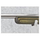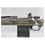 75R. Ruger – Mod. M77 Gunsite Scout Left-Handed (M77-LGS) – 308 Win Cal. Bolt Action Rifle – w/18” Barrel w/Flash Hider, Blade Front, and Rear Peep Sight, 2-Piece Factory Scope Rings, and Integral Rail Mounts – Matte Blued Finish w/Factory Checkered Green Laminated Pistol Grip Wood Stock w/Factory Recoil Pad – Unfired w/Factory Box, Manual, Lock, and 2 Factory Magazines