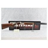 88R. Savage-Stevens – Mod. 512 – 20ga. 3” Over/Under Shotgun – w/26” Over/Under Interchangeable Choke Vent Rib Barrels w/Bead Sight – Blued/Satin Stainless Finish – w/Deluxe Checkered Pistol Grip Wood Stock and Forearm w/Factory Black Rubber Butt Pad – w/Single Select Trigger – w/As New w/Box, Manual, and Chokes