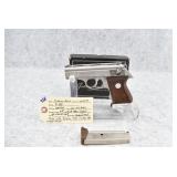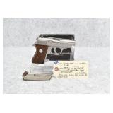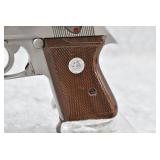 93R. Indian Arms – Mod. P380 – 380 Auto Cal. Semi-Auto Pistol – w/3¼” Barrel w/Front and Rear Sights – Satin Stainless Finish – w/Checkered Wood Grips w/Indian Logo – w/2-Piece Box, Manual, and 2 Magazines