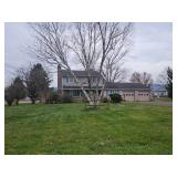 A Country Home: 3 Bedroom 2 Story Vinyl Sided Home with a Brick Front on a Large Country Lot; Eat-In Kitchen with lots of Cabinets & Kitchen Aid Dishwasher; Living Room with Brick Fireplace; Dining Room; Home Office; Master Bedroom with Ensuite Bath; 1.5 Additional Baths; Foyer with Open Stairway; Plenty of Closets; Basement w/Family Room, Storage & Furnace Rooms; Attached 2 Car Garage; Front Sitting Porch; Well & Septic; Oil Heat; Central Air; Water Softener; Detached 36’ X 48’ Garage with Electric & Water, Horse Stall & Feed Room, 12’ X 16’ Overhead Door; A Spacious Yard for Family Gatherings with a View of the Valley Farmlands. Taxes: $2,830.