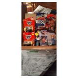 Clock collection, Pyrex, John Deere tractor cookie jar, cabinet, wooden high chair, lamp, John Deere 7420 tractor in box, oyster tin, knives (pocket & hunting), runner sled, microwaves, portable air conditioner (new), sewing machine table, Corelle, Tupperware, bowls, bookshelf, dressers, cedar wardrobes, chests of drawers, Jeff Gordon items, china cabinet, hats, carnival glass, 2 drawer filing cabinet, beds, stereo, lamp table, lantern, wicker bassinet, rocker, 8-tracks, coolers, Christmas, garden tools, stacking toolbox, hand tools, Troybilt rear tine tillers, Stihl SG20 backpack sprayer, cement tools, shop vac, floor jack, doors, sprayers, spreaders, garden seeder, chairs.