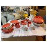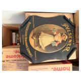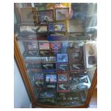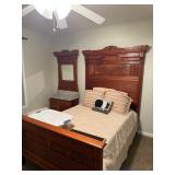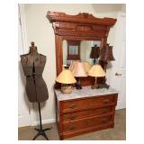 Iron patio set w/6 swivel chairs, wardrobe, dresser & chest of drawers, nightstand, dresser w/marble top, trunk, drop front desk, lamp table, wardrobe w/nightstand & dresser, highback bed w/marble top dresser, marble top china cabinet, china cabinets, curio cabinets, sofa & chair, sofa, coffee/end/sofa tables, corner curio, sofa & wingback chairs, wicker sofas, chairs, lounge, tables, lamps, pitcher & bowl w/metal stand, crocks, advertising, oil lamps, Banquet Tea lamp, wall display, P. Buckley Moss prints, tapestry, advertising items, pictures, dolls, parlor lamp, half tables, bar stools, lamps, Fiesta (Christmas & other), vases, figurines, wall fountain, Virginia Tech collectibles, clock, knives, air compressor, metal brake, walkboards (24 & 30ft), Hudson trailer, extension & fiberglass ladders, generator, roofing run & air hose.