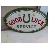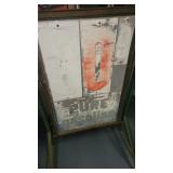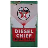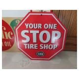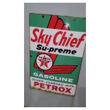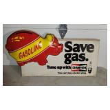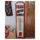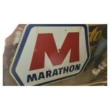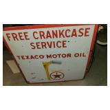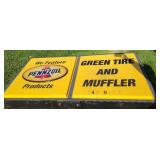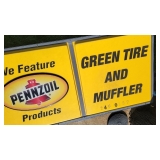 SIGNS: Kendall 2000 Mile Oil Can SST (60x36-framed), Early Firestone "Change Over Today - Extra Power Battery" Banner (Cardstock, 117x33), Texaco DSP (72" dia), Texaco DSP (42" dia), Genuine Star Car Parts SSM (36x30), (2) Framed 1934 Plymouth Dealer Posters (50x38), Pate Oil Co "Hello Neighbor" Reflective SSM (18x13), USL Batteries SSP (60x18), Miller Tires SSP (72x20), Good Year Carriage Tires SSP (Rough, 66x10), Supreme Auto Oil SSP (70x30), Texaco Free Crankcase Service SSP (30"sq), Goodyear Tires DSP (Bullet Holes, 66x24), Good Year Tires SSM Emb (51x24), Purol Gasoline SSP (72x18), Marathon DSM (60x47), Atlas Tires-Standard Oil SSP, Atlas Tires SSM (70x17), US Royal Tires DSM, BF Goodrich Tires DSM (48x19), Goodrich Batteries-Tires-Accessories SSP (78x18), Kelly Tires SSM (60x18), Good Luck Service SSP, Fortified Tagolene Motor Oil SSM (23x12), Quaker State Tombstone DSM (29x26.5), Quaker State Button (23" dia), Quaker State Buy Quality SSM (96x36), Galena Motor Oil Emb (26x15), Champion Spark Plugs Dealer Sign SSM (60x42), Kendall Confidence SSM (72x35), Cities Service Clean Rest Rooms DSP (24"sq), Texaco "Registered Rest Rooms" DSM Curb Sign w/Frame, Texaco Flange DSP (23x18), Wolf's Head Metal Flange (22x17), Valvoline Motor Oil Center SSM Emb (24x18), Valvoline Marine White Gasoline/Super Outboard Motor Oil SSM (48x12), AAA Road Service DSM (28x24), Trailways Bus DSM (48x24), Remington Tires-Nelsonville Car Care 2pc DSM (52x28 & 50x12); Remington Tires SSM-Emb (60x13), Pure Gasoline Price Curb Sign (Faded), PA Official Inspection Center Sign DSM (24x2), "No Parking at Any Time" Porc Flange (14x12), Slow Down Children-School SSP (30x20), (2) Sohio Petroleum Co License# SSP (36x18), Seiberling Tires SSP (Cut, 78x22), D-X DSP (Cut, 78x60), Gas War SSM (39x27), Coca Cola 24" Button, (2) Pepsi Cooler Panels SSM (48x10 & 22x10), Early Fisk Tire Framed Advertiser, Framed Trade Stamps Wall Hanger, 1981 Tecumseh Engines SSM (24x16), Later AC Delco, Chevrolet Corvette, NAPA, Exide & Interstate SSM Signs, Road Signs; PLASTIC: Sunoco w/Metal Can Lighted Sign (46x27), Ashland Lighted Sign (72x44), Pennzoil-Green Tire & Muffler Lighted Sign w/Metal Can (97x50), Pennzoil (72x42), Castrol (48"sq), Exxon (50x27), Clark (32" dia), Regull Tires, Citgo, Shell, Firestone, Gulf, Walker Muffler (72x48), Champion Piggy Bank Sign (33x17), Auto Value (72x48), Pennzoil Sidewalk Plastic Sign w/metal frame, THERMO's & CLOCKS: Fram Filter Service, Standard Fuel Oils (11x3), Delco Dry Charge Batteries (39x8), Sunoco Parish Oil Co (36"), Auto-Lite "Power Bond" (27x8), Auto-Lite Thermo (No Tube, 26x8), Prestone You're Safe & You Know It, Arthur Gillespie "Ford-Sales & Service" (Lyons, OH-Wood), Royal Crown Cola (25.5"), Duralite Quaker State Clock & Hastings Duralite Clock.