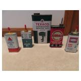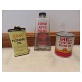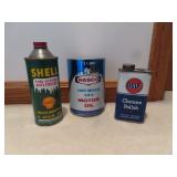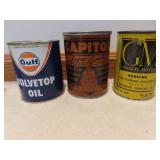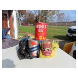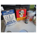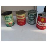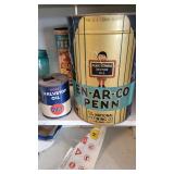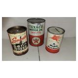 170+ OIL & MORE CANS & SMALL OILERS: OIL CANS: 1qt: Safety Penn, Mobilfluid, Empire State, Sterling, DX, Kendall 2000, Phillips 66 Aviation, Texaco, Marine Special Outboard Oil, Rislone Snowmobile, Esso, Quaker State, Penn Champ, Shell X-100, Golden Shell, Sinclair, Oilzum, Royal, Castrol, Macmillan, Honda, Marathon, STP, Quaker City, Rotella, Texaco Outboard, Maytag, Sunoco/DX 1pt Outboard Oil, 1gal-Above: Gulf Gear Lube 16gal Can, Gulf Supreme 2gal, Gold Seal 2gal, Green Shield 2gal, Super Sohio 5gal, Sohio Dry Cleaner, Sohio HQD, Sohio Anti-Freeze, Sinclair, Co-Op 5gal, Nourse, Shurflo, Circle Tour, Cross Country, Midland, Minimax, I-H Hy-Tran, A Penn, Sterling 5qt, Aeroshell, Cen-Pe-Co, D-X 5gal, Grease & Other: Early Texaco 1pt, Sohio Tar Remover, Sohio Hi-Cyl Cone Top, Sohio Farm Oil Can Bank, Sohio Liquid Glass, Sohio 7c's, En-Ar-Co, Cen-Pe-Co 50lb Grease Bucket, Capitol, Esso, Texaco, Shell Darina Ax, Wolf's Head, Cities Service Cisco, Marathon, Sinclair, Ring Free, RPM, Veedol, Phillips 66, Suntune, Try-Bo, Sunoco Polish, Gulf Valvetop, Firestone Chromium, Man-O'-War Marine Varnish, Wards, Eskimo Anti Freeze, GLASS: Rare Hudson 1qt w/Semi Truck pic, (8) 1qt Fleet-Wing Oil Bottles w/carrier (full), Sohio inc: Shampoo Soap, Hi-Cyl, Auto Polish, (2) Windshield Concentrate, Household Oil & So-Clean Glass Cleaner; Anco Solvent, Mobil Sovasuds, Texaco Outboard Motor Oil, Sinclair 1qt, Kendall 1qt, Esso 1qt, Linco-Penn 1qt (x), Jay B Rhodes 1qt, Huffman 1qt, Marquette 1qt, Oil Bottles w/Carrier, SMALL OILERS: Phillips 66, Kendall, Hammond, Allstate, Sinclair, Wm Penn, Gulf, Sunoco, Texaco, Atlantic, Sohio, Esso, Marathon, Shell, Mobil, Boron, Pep Boys, Sid Harvey's, Citgo, Exxon, Cities Service; WHIZ: Zorbi Cone Top, Lusterize, Brake Fluid, Car Wash, Sealer, Kleen-Fluid, SPECIAL & MISC: Mopar Chrome Polish, GM Crankcase Oil, Pure Oil Sample Container, Maytag Mix Pitcher, Harley Davidson 1qt Motor Oil, H-D Premium II 1qt Oil, H-D Air Dry Acrylic, (2) H-D Bearings Boxes, (2) H-D Piston Ring Boxes, Indian Motor Cleaner, Rare Pep Boys Tin Bulb Kit (Cornell Tires), Penn Jersey Tin Bulb Kit, Goodrich Soapstone Canister, AC Spark Plugs Tin Box, Irish Mail Ride-On Cart & More!