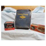 AIR METER, GAS PUMPS, GLOBE, GLOBE LENSES, DISPLAYS & MORE! Eco Model 97 Tireflator on Post, Pre-Visible Gilbert & Barker Long Distance System Type 34 Gas Pump, Fill Rite Model 60-A Farm Gas Pump, (2) Gilbarco Calco-Meter Gas Pumps, (2) 1960's AO Smith partial Gas Pumps w/Texaco Diesel & Texaco Petrox Pump Plates, Original Milk Glass Globe, Pair Boron "Supreme" Glass Lenses, Cast Iron Traffic Light/Light Base, Econo-Lite Traffic Light, Lubester on Casters, Pennzoil 16gal Barrel w/Lubester, (2) Chevrolet Tailgates Converted into a Bar, Chevrolet Genuine Fan Belts Metal Wall Holder (17x6), BF Goodrich Tire Holder w/Tire, Bear Wheel Alignment Gauges Metal Self Standing Display w/tools (48x44), Bear Headlight Tester, Terrific Homemade Ford Model A & T Tools/Coils Display, (2) Model T Steering Wheels, Ford Oiler, Ford Hubcaps, Ford Ammonia Sulfate Sack, Ford Center Caps, Standard Oil "Oil Wood Cask", (2) Trico Service Cabinets on Wheels, Quaker State Service Station Oil Rack, Esso Converted Oil Cans into Parts Holder (24 cans), Sohio "Duron" Oil Can Display Stand, Valvoline Oil Can Display, Sohio "Hoods Up" Wall Mount Towel Dispenser, Atlas Glas-Kleen Wall Towel Dispenser, US Royal Tire Holder, Dayton Tire Holder, Dunlop Tire NOS Cradle, Dunlop Tire Holder, Mulholland Industrial Double Light, (3) 18" Green Porcelain Light Shades, (3) 16" White Porcelain Light Shades, (3) 1940's 14" Holophane #685 Hanging Industrial Lights, Delco-Remy Service Parts Counter Cabinet, Packard Cable Terminals Counter Box, Sunoco Tube & Tubeless Tire Patch Metal Wall Mount Box, Tung-Sol Auto Lamps Counter Display, Champion Spark Plug NOS Cabinet w/Shelf, Rt 33 Drive-In Theater Speaker, Anco Laurel & Hardy cdbd Sign, Goodyear DeLuxe Tube w/Box, Atlas C-22A Oil Filter w/box, Pair Atlas Wiper Blades Refill Boxes, 1940 Gulf Calendar, Sinclair Winter Cap, Texaco Cap, Standard Motor Meter, Champion Spark Plug Mechanics Fender Cover, NOS AC Delco Spark Plugs w/Orig Box, NOS Champion Aircraft Spark Plugs w/Orig Box, (6) NOS Champion 62S Spark Plugs w/Orig Box, Yellow Cab Taxi Metter, W.N. Durant Trolley Passenger Counter, David Bradley Tractor Hood, (3) Fuel Nozzles, Tire Ashtrays, Few Hubcaps, License Plates (Ohio 1914, 15, 16, 17, 18, 22-1970's n/c + other States), 1916 N.H. Porcelain License Plate, Crankshaft Gauge, Car Manuals, Road Maps, Sinclair Rocker Oil Can, Fill-Rite Crank Pump for Oil Tank, Fan Belt Measurer, US Flag License Plate Topper, Petroliana Ephemera, Gas/Oil related Pictures, Bud Dale Jr Hood, (4) MIB AP T-14 Tail Pipe Extensions, (4) 1931/1940's) Motor Age Magazines, (3) Super Chevy Winner's Jackets TOOLS: Samson Rolling Oil Catch, Approx 5-Cases of Red Line Synthetic Oil, Jump Pack, 3-Ton Floor Jack, Jack Stands, Car Ramps, NAPA Portable Air Tank, Small Shop-Vac, (7) NOS J-Mark Oil Can Spouts, etc!