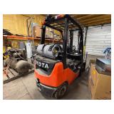 Tow Motor/Tools/Misc. Toyota 3,300 lb. LP forklift, mod. #8FGU18, side shift, 7.085 hrs.; Cub Cadet ZT1 zero turn mower, 23hp, 50” deck; like-new Cub Cadet 2X 30” two stage snow blower; QD Bobcat forks & material bucket; Champion 3-phase air compressor; Iron Horse 6.5hp air compressor; BelAire 60-gallon air compressor; Jenny horizontal air compressor; (4) commercial panhandle dehumidifiers, mod. #PH R130P LGR; (3) Ridgid shop vacs; (12) section of warehouse shelving; loads of step & ext. ladders; like-new lift gate off box truck; two flammable cabinets; 2022 Atosa 88lb ice machine; 1/2” and 2” insulation board; pile of misc. I beams; (15) nice Uline folding 5’ office tables; (30) stack office chairs; file cabinets; desks; TV; printers; 12’ projector screen/projector; office supplies, etc.