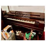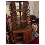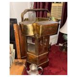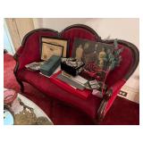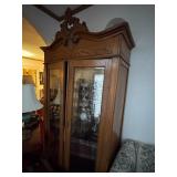 Furniture/Antiques. Curved glass curio; Victorian furniture; Victorian velvet loveseat; United States melodeon “Whitney & Stanton” Cleveland, OH; flip top table; Victorian armoires; chairs; depression 6-drawer stand; hump trunk; oriental dresser; china hutch; Acorn 16-stair stairlift; weighted sterling pcs; carved room dividers; hall trees; mirrors; lamps; Goebel pigeon; oriental ivory wall hanging; perfume bottles; ladies hats; plated tea set; brass items; crystal glass; etc.
