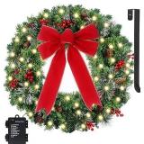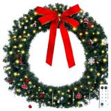 - 【ALL-IN-ONE FESTIVE DESIGN】-- Beautifully decorated and ready to hang! This pre-lit wreath comes complete with an elegant bow, natural-look pine cones, and classic red ornaments for a charming, traditional holiday look right out of the box.