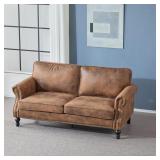 Nailhead Trim Couches for Living Room, 22" Deep Seat Rolled Arm, Comfy Upholstered Sofa with Wooden Leg, Large Traditional Sofa (Brown + Faux Leather,Loveseat) ITEM IS THREE BOXES
