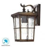 Home Decorators Collection Barrington 11.25 in. 1-Light Golden Bronze Hardwired Outdoor Wall Light Lantern Sconce with Clear Water Glass