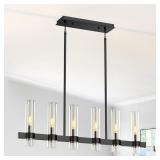 (80). Island Lights for Kitchen,6-Light Modern Farmhouse Chandeliers for Dining Room,Large Linear Pendant Light Fixtures,Adjustable Height Hanging Dining Room Chandelier Over Table,Clear Glass Shade