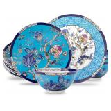 (166). ACMLIFE Bone China Dinnerware Set for 4, 12-Piece Vintage Floral Dinnerware Set, Kitchen Plates and Bowls Set, Thanksgiving Christmas Gifts for Women (Blue)
