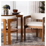 (18) 4 Pack Baxton Studio Carice Cream Boucle and Walnut Brown Wood Dining Chair