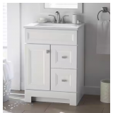 - 24.5 in. W x 18.75 in. D x 34.375 in. H vanity provides ample bathroom storage