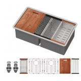 (28) Logmey 30 in. Undermount Workstation Sink with Low Divide 16-Gauge Stainless Steel Double Bowl Kitchen Sink