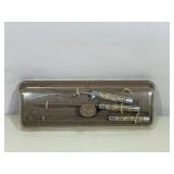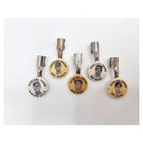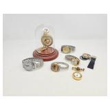 300 4 Wrist Watches Including a ladies vintage Bulova white gold-plated case; ladies tri-tone Elgin; Stauer fashion watch; and man's Pulsar. 301 Ladies Vintage Gold Bulova Wrist Watch Bulova 23 with 14K white gold case, gold-tone stretch band, housed in a vintage Bulova display box. 302 3 Sterling Bracelets One with oval cut garnets; one with oval cut amethysts; and the third is a flat S-link. 1.378 ozt total. 303 Two Sterling Necklaces Includes a 24" rope chain supporting an Irish knot pendant; 18" snake link chain supporting an amber pendant.0.786 ozt total. 304 6 Sterling Rings Incudes two wedding sets; East Hempfield High School 1939 ring; and mans ring.0.775 ozt total. 305 6 Sterling Rings Various styles and sizes. 0.700 ozt total. 306 6 Sterling Rings Various styles and sizes. 0.676 ozt total. 307 Man's Tungston Masonic Ring Size 12 with several panels with engraved Masonic symbol. 308 2 Men's Stainless Steel Bands One with engraved crosses, ring size 9; the other with smooth finish, ring size 11. 309 Man's Gold Ring Line engraved designs, ring size 10-3/4, 3.93 dwt. 310 Gold Band with Heart Designs 14K white gold band (mis-shaped), 1.06 dwt. 311 Bolo Ties, Money Clip, etc. Includes an Alpaca silver bolo tie; banded agate bolo; Disabled American Veterans bolo; silver-tone money cip; inlaid wood belt buckle; and pair of gold-tone belt/collar tips. 312 Large Grouping of Tie Tacks and Dress Buttons, Etc. 313 Cuff Links and Tie Clips Various styles, gold-tone and silver-tone; one sterling with monogram. 314 Collection of Lapel Pins and Other Pins Also includes a wooden nickel. 315 2 Strands of Pearls 34" strand of 9mm pearls with a 14K yellow gold clasp; 18" strand of 6mm pearls with a sterling clasp. 316 Costume Necklaces, Earrings and More Includes a grouping of stud earrings, three costume rings; Swarovski American Flag lapel pin in box; several necklaces in gold-tone and silver-tone. 317 Costume Necklaces and Bracelets Grouping of various gold-tone and silver-tone necklaces of various styles and lengths; rhinestone bracelet and more. 318 Costume Beaded Necklaces and Bracelets Includes faux pearl; wooden beads; rhinestone (marked brass); magnetic hematite and crystal bracelet; inlaid stretch bracelet; quartz beaded bracelet. 319 15 Costume Brooches Includes several pairs; large Trifari burst, etc. 320 Large Collection of Men's Jewelry Includes tie clips; tie tackls; bracelet; cuff link sets and more. 321 3 Jewelry Boxes Floral inlaid music box; globe decorated box souvenir from Cape May New Jersey/ Lewes Ferry Delaware; Vintage Trifari box. 322 Earrings, Cuff Links, Etc. Approx. 10 pair of earrings; 3 sets of cuff links; pocket knife, various tie tacks, belt buckle, hair barrette, etc. 323 Costume Necklaces 8 vintage necklaces including rhinestone, black glass, art glass, etc. 324 Native American Style & Other Necklaces Including one necklace made from wishbones; leather Native American woman; wooden beads and more. 325 Costume Necklaces Includes many beaded, rhinestone, wooden, cameo set of faux shell; etc. 326 Grouping of Rosaries 327 Bracelets, Belt, and Compact 328 Watch Grouping Pocket watch with eagle cover; various wrist watches; lapel watch. Not tested for working condition. As is. Also incudes a glass globe watch holder 329 Antique Cast Iron Toy "Yellow Kid" Cap Bomb 330 Celluloid Souvenir Airplane "Spirit of St. Louis" New York to Paris May 21, 1927, approx. 2" in length. 331 Swamp Creek Rod & Gun Club Buttons Swamp Creek Rod & Gun Club, Zieglerville, PA, from the years 1979 through 1982 and 1984 through 1991; along with three Exhibitor buttons from the Antiques Dealers' Association of Montgomery County. Each approx. 1.75" in diameter. 332 Pennsylvania Game Commission Patches and Similar 13 patches including 1991 thorugh 1995 -"Working Together For Wildlife Pennsylvania Game Commission"; Hunter Trapper Instructor patch; Safe Hunter; 25 years Hunter Education; anniversary patch; Trapper Training; We Need Wildlife; 10 Years; along with a Austin Healey Club of America. Patches range from 4" diameter to 3". 333 5 Baseball Themed Pencil Clips Cleveland Indians Lou Boudreau and Ken Keltner; NY Yankees Babe Ruth; St. Louis Browns Satchel Paige; and White Socks American League Champs 334 5 Cleveland Indians Pencil Clips Luke Easter; Al Lopez; (2) Early Wynn; and Larry Doby 335 5 Baseball Themed Pencil Clips (2) New York Giants Christy Mathewsons; NY Yankees Babe Ruth; Pittsburgh Pirates Honus Wagner; Detroit Tigers Ty Cobb 336 2 Cleveland Indians Pencil Clips Allie Clark; Dale Mitchell; Joe Gordon; Steve Gromek 337 5 Baseball Themed Pencil Clips NY Giants Christy Mathewson; NY Yankees Babe Ruth; Pittsburgh Pirates Honus Wagner; Detroit Tigers Ty Cobb; St. Louis Browns Satchel Paige 338 5 Cleveland Indians Pencil Clips Roberto Avila; Bob Kennedy; Early Wynn; Bob Feller; Ray Boone 339 10 Advertising Pencil Clips Keller; Go Steelworkers; Bob Dole for President; Swam Elec; Strongheart Rations; A of M; Ace; Pepsi-Cola; Morton's Salt; 7-Up 340 10 Advertising Pencil Clips 7-Up; Brown & Sharpe Tools; Yale Employees FCU; Glenstone Block Co; Diamond Salt; Morton's Salt; Yeomen; Fremont Packing; A of M; Orange Crush 341 10 Advertising Pencil Clips Morton Salt; Pioneer; Sterling Oils; 7-up; A of M; Colonial Salt; Sweetheart Bread; Spaulding Bread; Harry Cooper Supply; Standard 342 10 Advertising Pencil Clips Fletcher; Keen Kutter IBEW; Morton Salt; Blue Cross; Modern Transfer Co; Yarnall Paint Co; West Reading Brooms; C.A. Herr Hardware; Boyd's Foot Powder 343 10 Advertising Pencil Clips (2) Starrett Tools; Red Goose Shoes Bartons; Mortons Salt 7-up; Bull Brand Feeds; Modern Transport; Diamond Salt; Vote Di Clerico Kidd Roane 344 10 Advertising Pencil Clips Red Goose Shoes; Diamond Salt; Colonial Salt; Harleysville Bologna; Ivory Salt; 7-up; Shapleigh Hardware; Local 150 Rittman 1955; Morton Salt; O of IA 345 10 Advertising Pencil Clips Buckeye Flour Feeds; Bunny Bread; Local 150 Rittman; Car