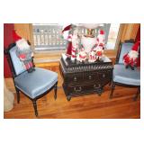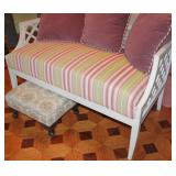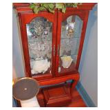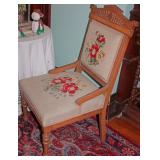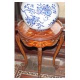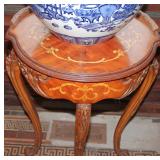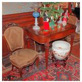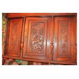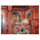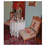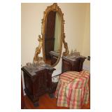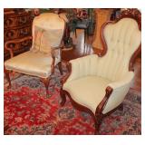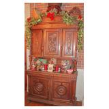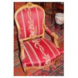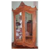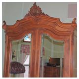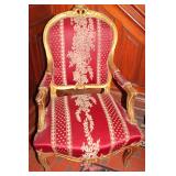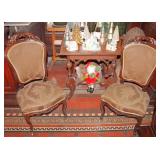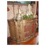 Beautiful antique heavily carved walnut hunt cabinet; pair of antique French marquetry inlaid/carved parlor tables; King Louis XIV style parlor settee; pair of matching parlor arm chairs; ornate gilt painted French carved console cabinet; small mahogany curio cabinet; several sets of antique Victorian parlor chairs; assorted side & end tables; mahogany sofa table; several upholstered parlor chairs; pedestal stand; small painted Bombay style cabinet; antique walnut parlor table; beautiful antique French heavily carved inlaid armoire cabinet; painted settee; footstools; wingback chair; beautiful antique heavily carved claw foot vanity; display cabinets; fern stands; antique painted Empire style library table; & more!