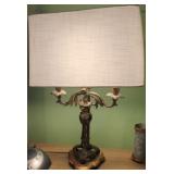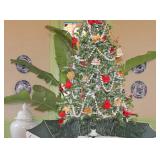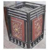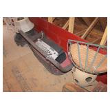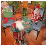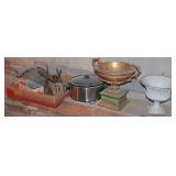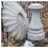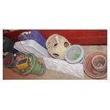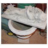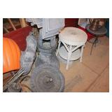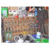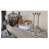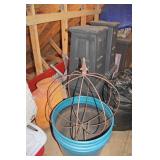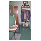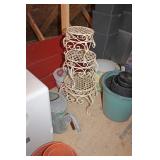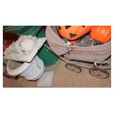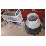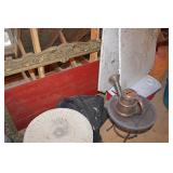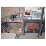 Some yard art; pots & planters; concrete birdbaths; lampshades; wicker planter; plant stands; wicker hanging porch bench; pet taxi; deck box; box fans; coolers; glass gazing ball on wrought iron stand; huge outdoor work table; new tile; some utility shelving; lots of Christmas & holiday decor; industrial Delta table saw on stand; scaffolding-like new; modern hall tree & bench; Samsung flat panel TV; commercial stainless steel clothing racks; wall art; modern computer desk; small painted buffet; doctor’s scale; floor lamps; home decor; household goods; & much more!