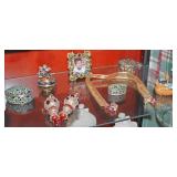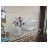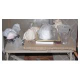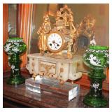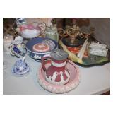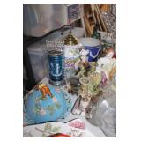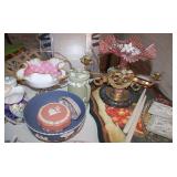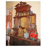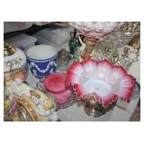 Blue & white porcelain urns; antique French gilt pier mirror; assorted architectural elements; sizable collection of Mary Gregory glassware; art glass; Fenton glass; hand-painted figural china; Nippon; majolica; lots of Victorian glassware; very nice cobalt blue cut to clear glass pitcher & tumbler set; silverplate; several glass punch bowl sets; Christmas china; lots of serving ware; several ornate antique gilt framed mirrors; antique Victorian candelabra set; several antique mantle clocks; pair of large Japanese hand-painted porcelain urns w/ stands; sizable Wedgwood jasperware collection-some rare pieces; antique Victorian glass oil lamp; pair of Victorian ruby red hand-painted glass mantle lusters; several antique stained glass table lamps; several oil paintings; crystal & brass boudoir or desk lamp; capidimonte; enameled & jeweled trinket boxes; huge collection of American Fostoria glassware-some tough to find pieces, see photos; pair of white porcelain ginger jars; framed Japanese woodblock print; Wedgwood table lamp; vintage Christmas santas & other decorations; majolica urn & pedestal; pair of Mary Gregory glass mantle lusters; ornate antique French ormolu table lamp; pair of pink Bristol glass mantle lusters; outdoor urns; blue & white porcelain Japanese garden stools; antique baby carriage; (2) pedal cars; John Deere pedal tractor w/ trailer; brass bank teller cage; antique Victorian bronze cherub wall lamp; Japanese lamp; porcelain tang horse sculpture; Victorian bride’s basket; Victorian epergne; flow blue china; transferware; brass pieces; bird cage; antique glass light fixture shades; sizable Steiff teddy bear collection-antique to modern; Syden Stricker & Peggy Karr glass; dresser sets; & much more!