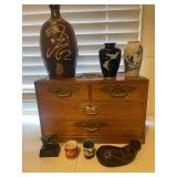 WHAT IS IN THIS AUCTION? This auction features Floor Vase, Fishing Poles, Framed Etchings, Textile Weavings, Asian Scrolls, Schlech Toys, Pottery, Shells, Jewelry, Vintage Porcelain, Bottles, Steins, Toby Jugs and much more!