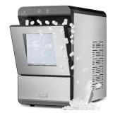 (168) Gevi V2.0 Countertop Nugget Ice Maker, Self-Cleaning Pellet Ice Machine with Stainless Steel Housing,Silver with Viewing Window