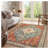 Lahome Boho Tribal 5x7 Washable Living Room Bedroom Rug, Oriental Soft Dining Room Rugs for Under Table, Large Distressed Printed Carpet for Entryway Kitchen Playroom (Rust/Dull Teal,5x7ft)