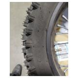 - Durable aluminum rim designed to withstand rough terrain. Tire features knobby tread for improved traction on dirt, mud, and trails